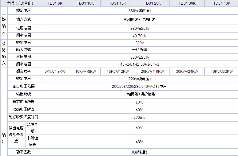 UPS型號: TD31 6K,TD31 10K, TD31 15K , TD31 20K, TD31 30K, TD31 40K