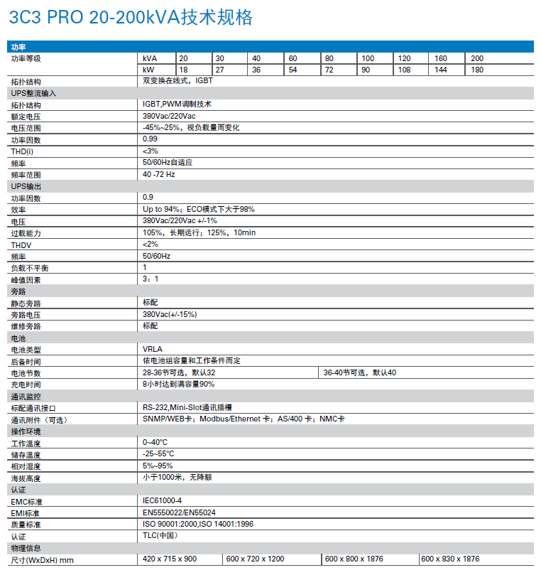 城堡3C3 PRO 20-200kVA