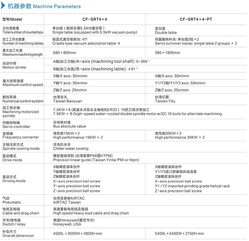 名稱:單/雙臺面搖籃式五軸加工中心 編號:CF-SRT4x4